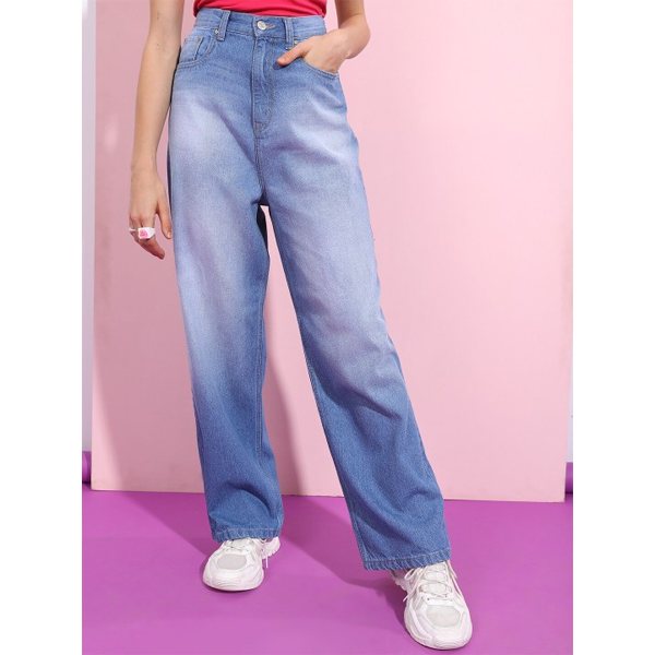 Women Comfort Straight Fit High-Rise Cotton Heavy Fade Jeans