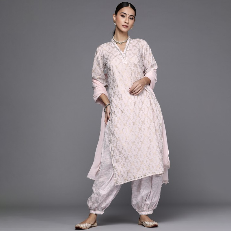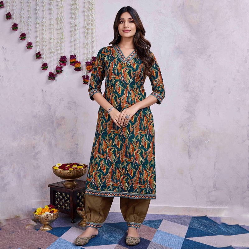 Geometric Printed Pure Cotton Straight Kurta With Salwar And Dupatta