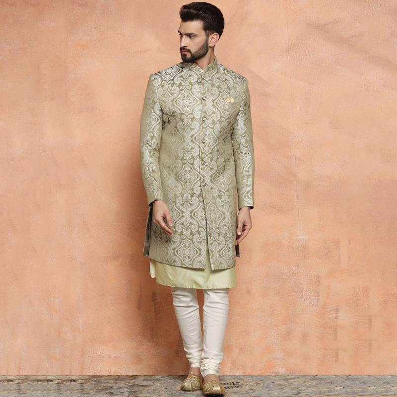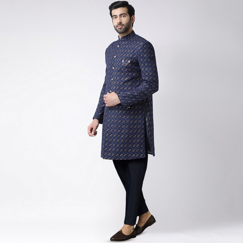Men Self-Design Cotton Indowestern Sherwani Set