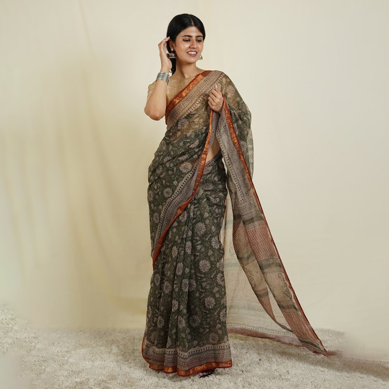 Floral Printed Zari Kota Saree