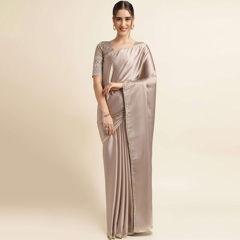 Beads & Stones Satin Saree With Blouse Piece