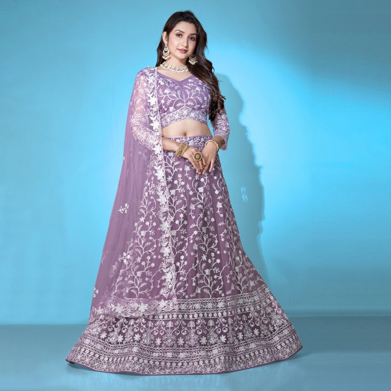 Embroidered Semi-Stitched Lehenga & Unstitched Blouse With Dupatta
