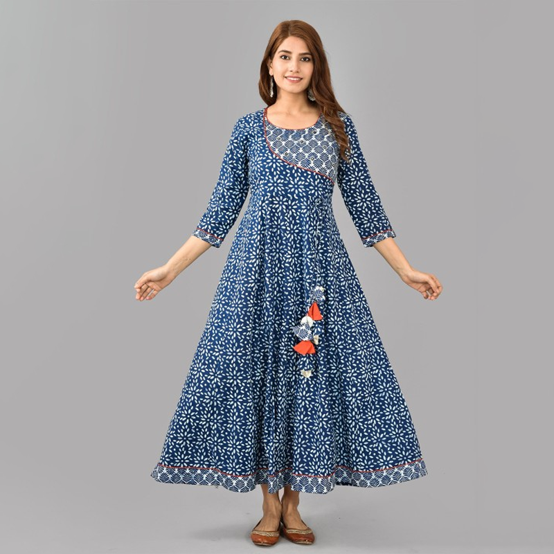 Ethnic Motifs Printed Round Neck Gathered Tiered Cotton Maxi Dress