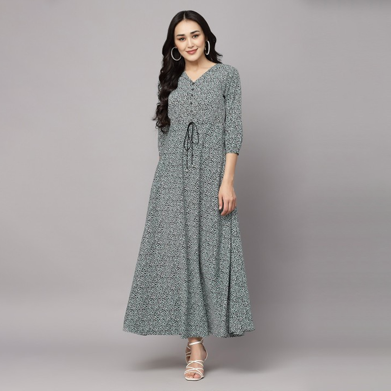 Ethnic Motifs Print Bell Sleeve Maxi Dress